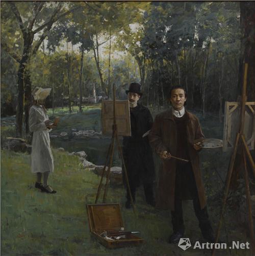 翁誕憲 《林風(fēng)眠與恩師梁伯聰》 200×200cm